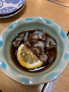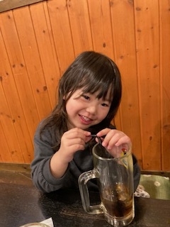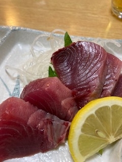 電車に乗って、お寿司屋さんの居酒屋まで行きました。